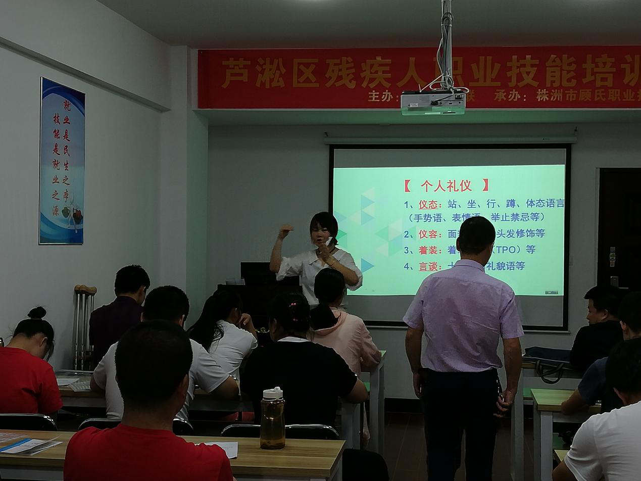 为认真做好芦淞区2019年残疾人职业技能培训工作,使残疾人学到一技之长,走上就业创业自食其力之路,减轻社会及家庭的负担,近日,由芦淞区残疾人联合会举办的2019年残疾人职业技能培训班在株洲顾氏职业技术学校开班。此次培训以就业为目标,培训内容围绕就业企业需求开展,为期7天。 芦淞区残联、区就业局领导莅临指导此次培训工作。
