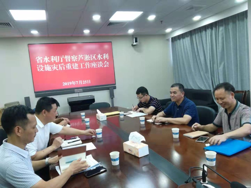7月25日上午,省水利厅水旱灾害防御处处长严乐军、市水利局相关负责人邱运众一行对我区水利设施灾后重建工作进行现场督查指导,区政府副区长杜益、区政协副主席、区水利局局长徐治江等陪同。