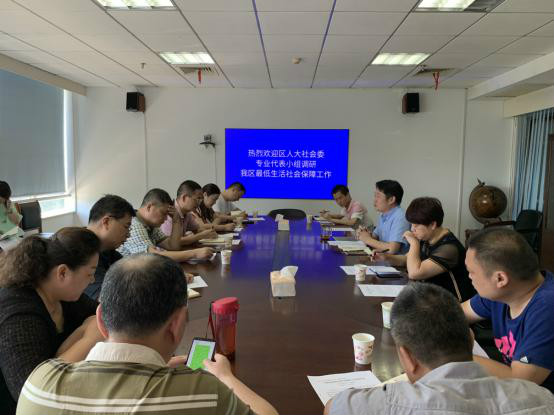 代表小组一行听取了民政局吴新泉局长关于全区城乡低保工作情况的汇报,并与区民政局社会救助股及部分镇(街道)民政办主任围绕我区最低生活保障工作中存在的困难和今后的工作思路进行座谈交流。区民政局就代表小组提出的低保问题进行政策解答,并征询了对低保工作的意见建议。