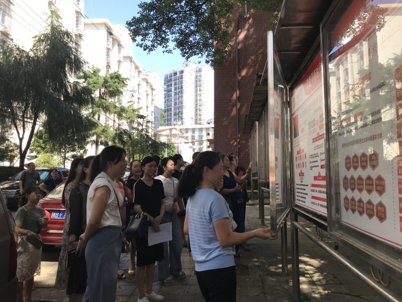 会议分为三个议程:首先,魏书记带领大家参观社区阵地建设,依次介绍社区前坪的宣传栏、社区内各功能室及上墙制度。