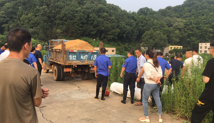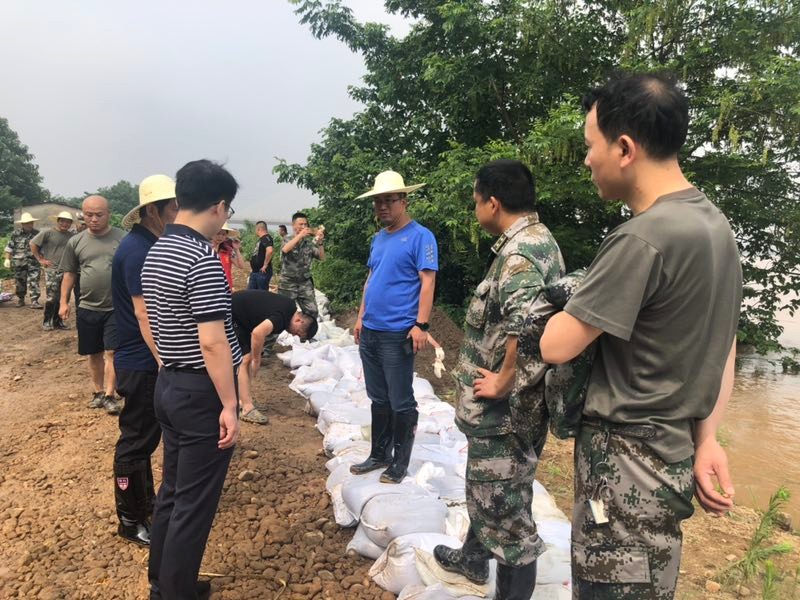 经过一彻夜的坚守,7月10日上午湘江枫溪段的水位已达44.6米。突然,长白堤巡堤人员枫溪街道微信群中报告,江水逐渐涨至曲尺村长白堤边缘。接到情况后,枫溪街道党工委书记张军明现场指挥,迅速调来挖机、沙土,街道机关干部、城管队员、民兵通力合作,一边将沙土装袋一边固堤,铺好沙袋后,张军明还不放心的走到沙袋砌起的临时堤坝上使劲踩实,“不能有丝毫松懈,再小的渗水也不能放过,守卫大堤绝不能掉以轻心”。