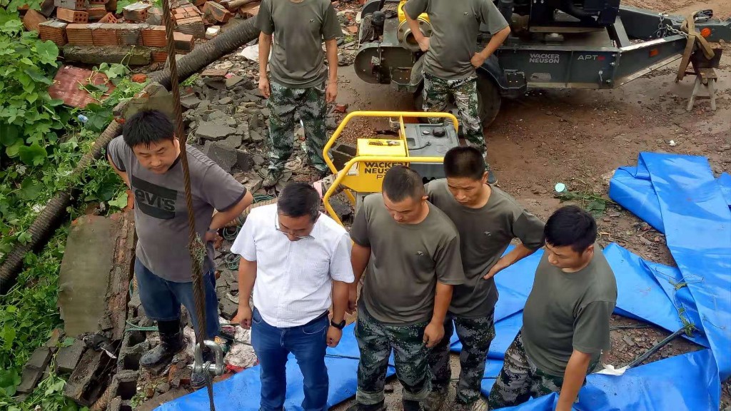 听闻枫燎社区下湾组受灾严重,洪水已灌入沿河港居民家中,湘江村党员易靖宇第一时间组织起枫溪街道湘江民兵救援队,驾船救援群众,不少居民家中年轻人都已外出打工,留在家中的都是行动不便的老人,救援队们一趟一趟的将老人背到船上,水中的杂物划伤了他们的膝盖,雨水也让他们浑身湿透,但他们不敢休息,与不断上涨的水位抢时间,经过一上午的努力,救援队成功解救出十余户受灾群众,转移群众30余人。