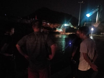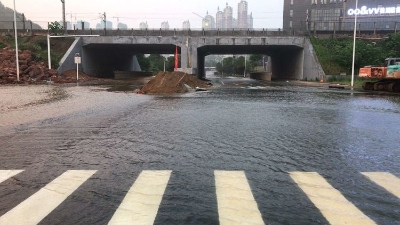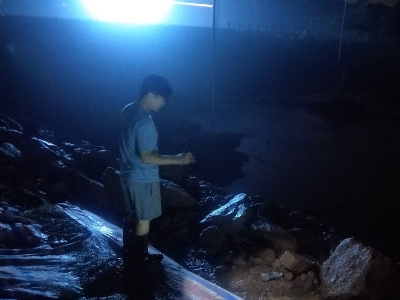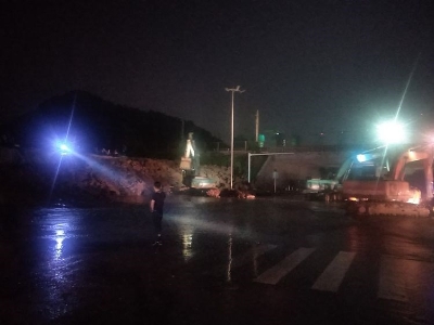 10日晚11点开始,伴随着2台挖掘机、三台渣土车的轰鸣声,一车又一车的片石不断加固护坡。住建、城管、交警、龙泉街道办事处等单位通宵达旦,通力合作,在夜晚20度的低温环境下,踩在冰冷的洪水中、顶着饥饿乏困、冒着护坡垮塌的风险,监测险情、现场指挥、搬运石料,有效控制管涌险情,保证了京广铁路安全。