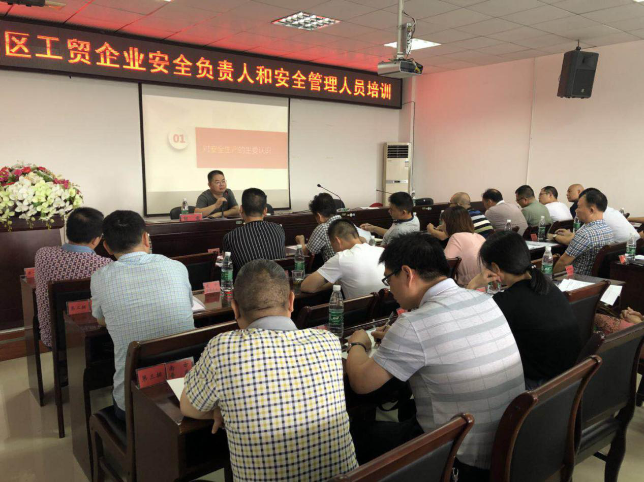 此次培训刘永局长就安全生产的主要认识;生产经营单位具体法律职责与法律责任;安全生产责任事故的“风险”;安全生产责任事故的反思等四个方面,对我区工贸企业的分管负责人以及安全生产负责人进行了培训指导;课堂秩序井然,气氛活跃,培训取得良好效果,进一步强化了企业安全生产全体责任意识,提高了基层安全管理人员管理水平,获得广泛好评。