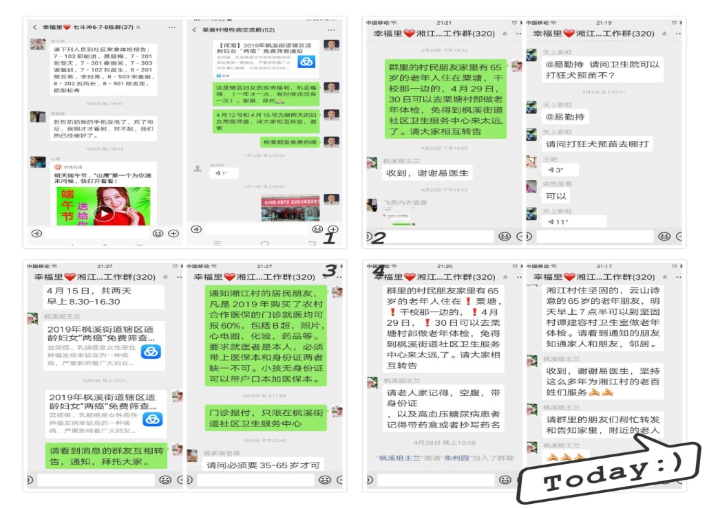 为实现"城乡统筹.幸福芦淞"创新社会治理系列行动工作目标,为辖区群众提供优质的健康服务,枫溪街道社区卫生服务中心与街道卫计办创新服务模式,借助群众工作新平台——"网上群众路线"微信工作群开展卫生健康服务工作,成效显著。