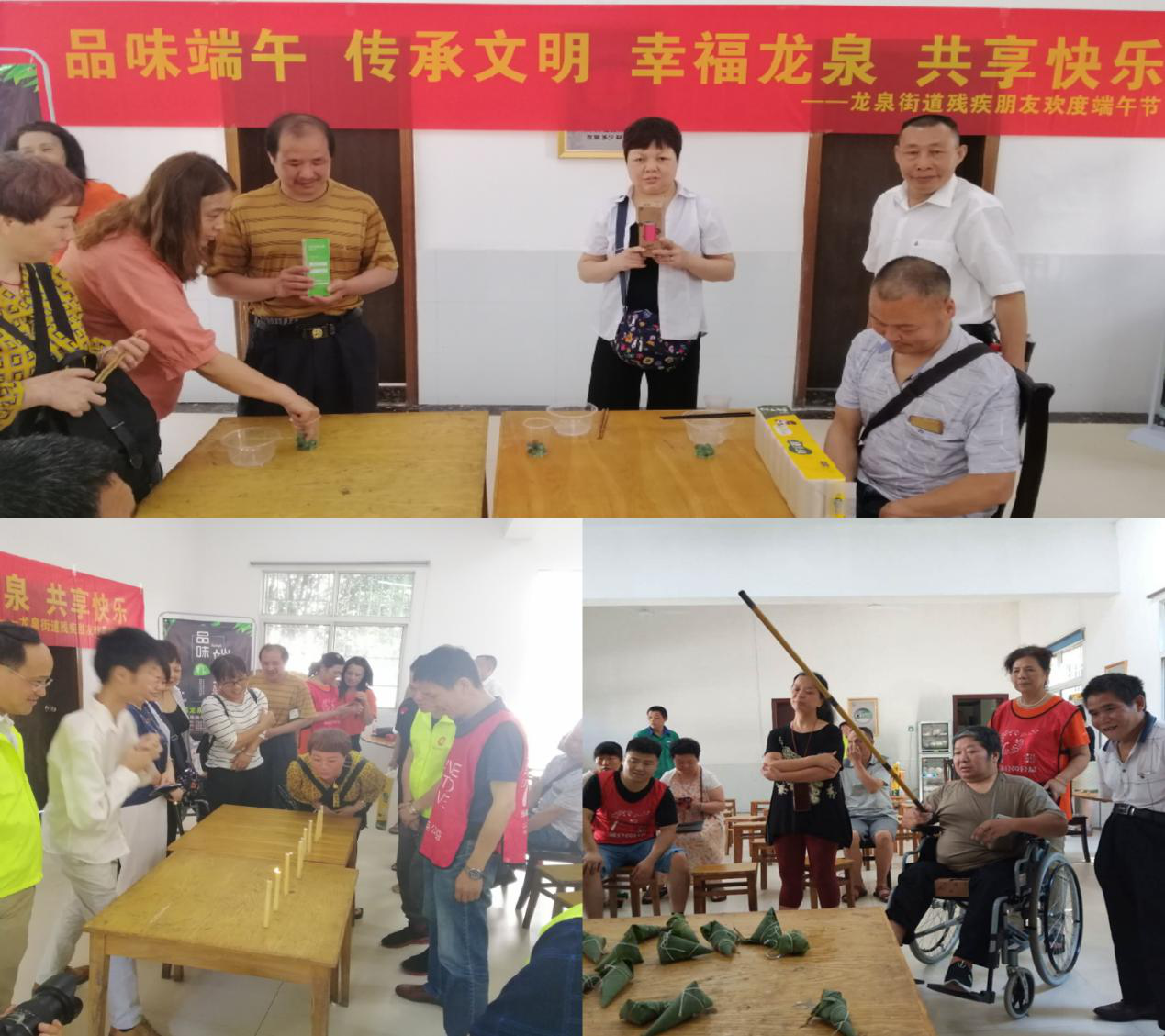 端午近,粽飘香。端午佳节即将来临,6月4日,由芦淞区民政局、芦淞区残联、龙泉街道办事处主办,芦淞区“橄榄枝”助残志愿者协会、株洲市蒲公英助残社会工作服务中心承办,龙泉街道各社区(村)协办联合在龙泉街道办事处举行了“城乡统筹•幸福芦淞”“品味端午,关爱残疾人”特别活动。