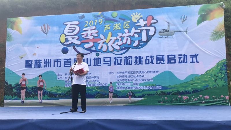 启动仪式由一曲大气磅礴、激情飞扬的《金扇龙鼓舞》拉开序幕。随后芦淞区委副书记蒋峰进行了致辞,蒋副书记表示:芦淞区正积极适应从‘景点旅游’向‘全域旅游’转变的新要求,扩大旅游产品供给,提升旅游公共服务水平,加强旅游市场监管,努力构建‘全域旅游、全景芦淞’美好前景;这次活动对进一步挖掘弘扬芦淞文化,推销展示芦淞山水,提高芦淞的知名度、美誉度,充分发挥旅游资源优势、加快经济发展有着积极意义。紧接着,株洲市文化旅游广电体育局党组书记黄上峰为山地马拉松挑战赛开赛授旗,最后由株洲市人民政府副市长杨胜跃宣布活动启动并为山地马拉松挑战赛鸣枪。