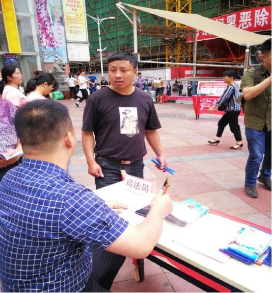 为进一步做好全区法治宣传教育工作,提高市民的法律素质和自觉守法的能力,切实增强居民依法信访观念,引导大家通过正常途径反映诉求,理性维权。2019年5月29日上午9点30分,株洲市芦淞区信访局联合区政法委、人民法院、检察院、司法局等部门在芦淞区智超时尚广场举行了大型法治宣传活动,活动涉及信访、扫黑除恶、反邪拒邪等多方面内容。芦淞区司法局积极响应号召,热情参与活动,共发放宣传资料1000余份,宣传环保袋100余个,提供法律咨询服务30余人次。