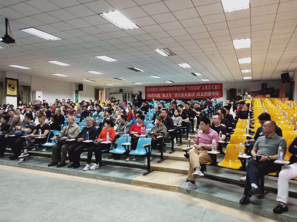 5月16日,在庆云街道党工委的积极统筹和精心筹备下,“城乡统筹·幸福芦淞——三社联动”之家文化宣讲活动在株洲市第一中学多媒体教室成功举办。此次活动由社区教育学院主办,区妇联、庆云街道办事处、株洲市第一中学共同承办,樟树坪小学、株董路小学学生家长和部分辖区居民共300余人到场听课。