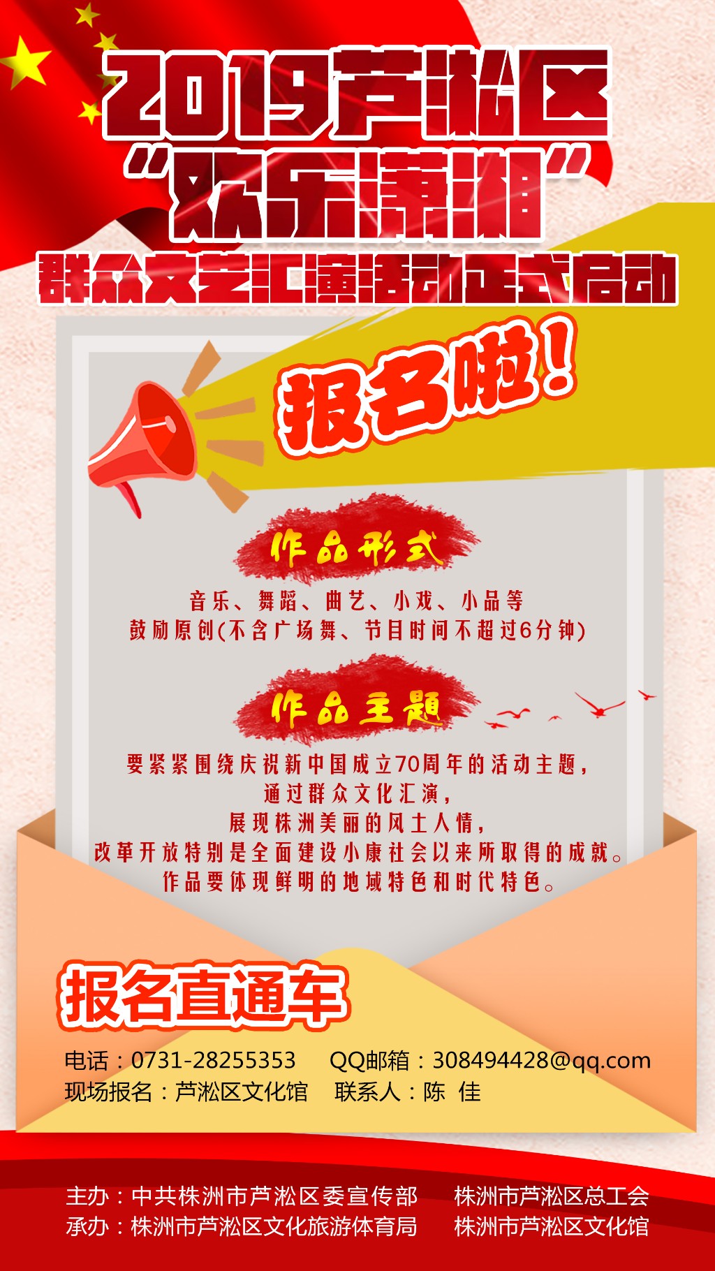 2019芦淞区“欢乐潇湘”群众文艺汇演活动报名工作全面启动