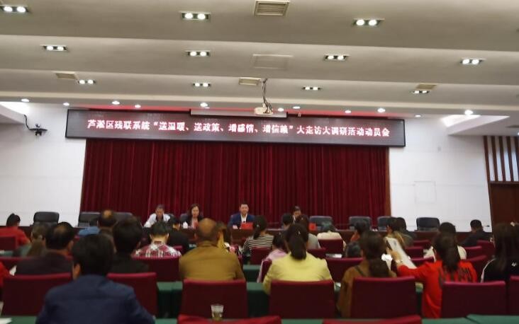 2019年4月17日下午,芦淞区残联系统召开“送温暖、送政策、增感情、增信赖”大走访大调研活动动员会。参加人员为残疾人工作委员会成员单位分管负责人、各街道(镇)分管领导、理事长及所有城区社区专职委员成员参会。区政府副区长杜益出席并作重要讲话。