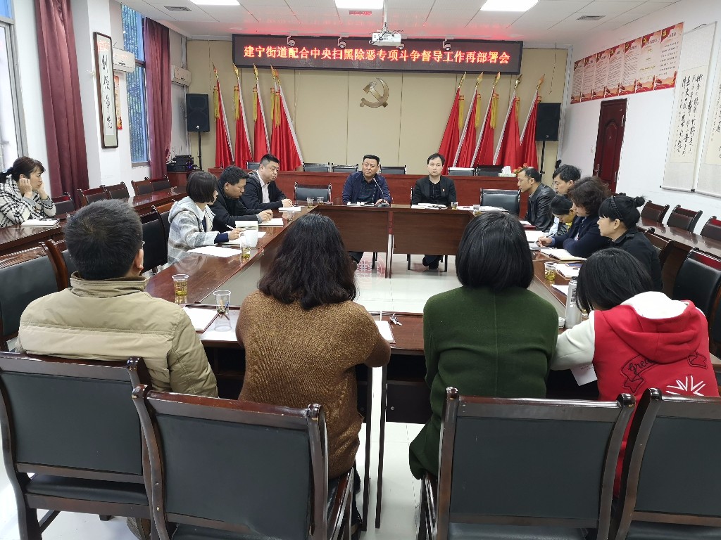 会上,刘晓波先后传达了市、区两级会议精神,街道党工委副书记余军跃就建宁街道配合中央扫黑除恶专项斗争督导工作下一步工作做了具体安排。最后,街道党工委书记强调“四个要”:一是站位要更高,充分领会扫黑除恶工作的重要意义;二是氛围要更浓,通过氛围的营造进一步提高辖区居民的知晓率;三是摸排要更实,积极发动居民群众参与到线索的摸排工作中;四是资料要更全,进一步完善资料台账的整理工作。