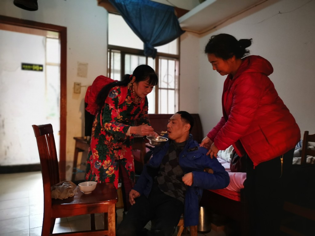 喂行动不便的老人吃饺子