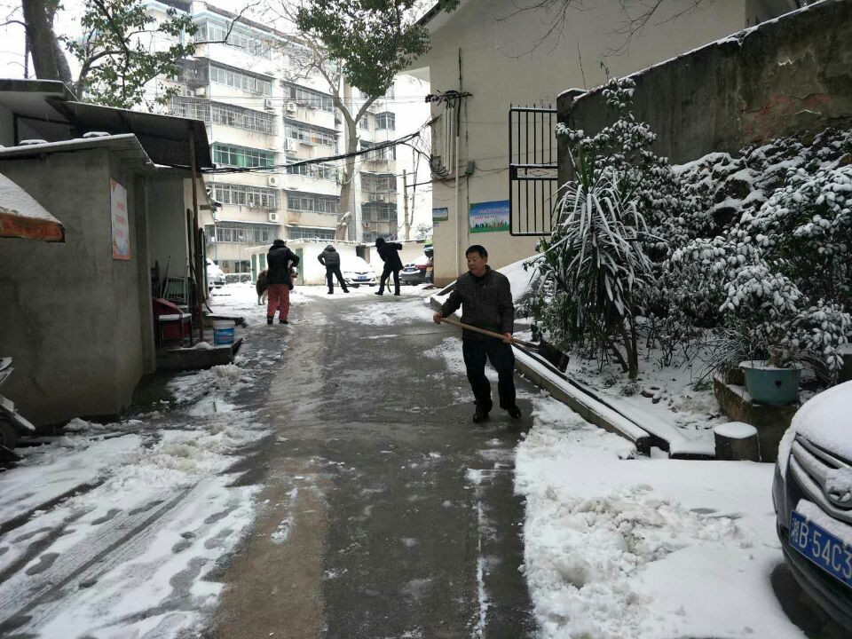 2018年 12月30日早上,董家塅街道南沿社区工作人员组织社区志愿者拿着铁锹、扫帚,对辖区的主要道路和楼门前的积雪进行铲除。志愿者们不顾天寒路滑,冒着凛冽的寒风,拿起铁锹和扫帚,铲的铲、扫的扫。大家一边扫着雪,一边提醒着过路的行人注意安全,许多路过的居民看到后也纷纷拿起工具加入到铲雪的队伍中。道路恢复了“原貌”,小区内外行人车辆畅通无阻。经过志愿者们一番奋战,露出一条条平整宽敞的道路,每个人脸上都红扑扑的,浑身上下热气腾腾,脸上都洋溢着温暖的笑容。