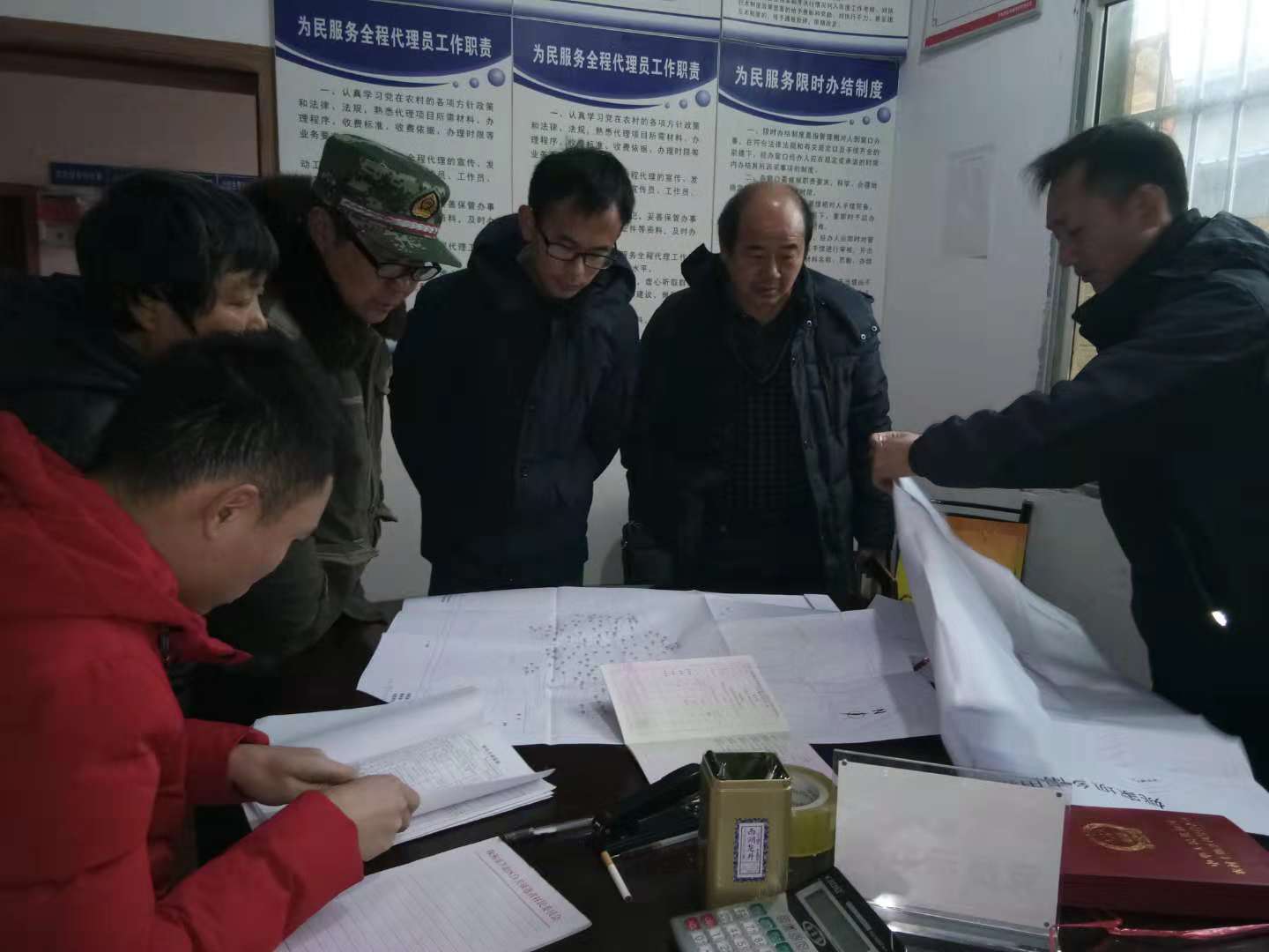 图为在白关镇选青村查看资料