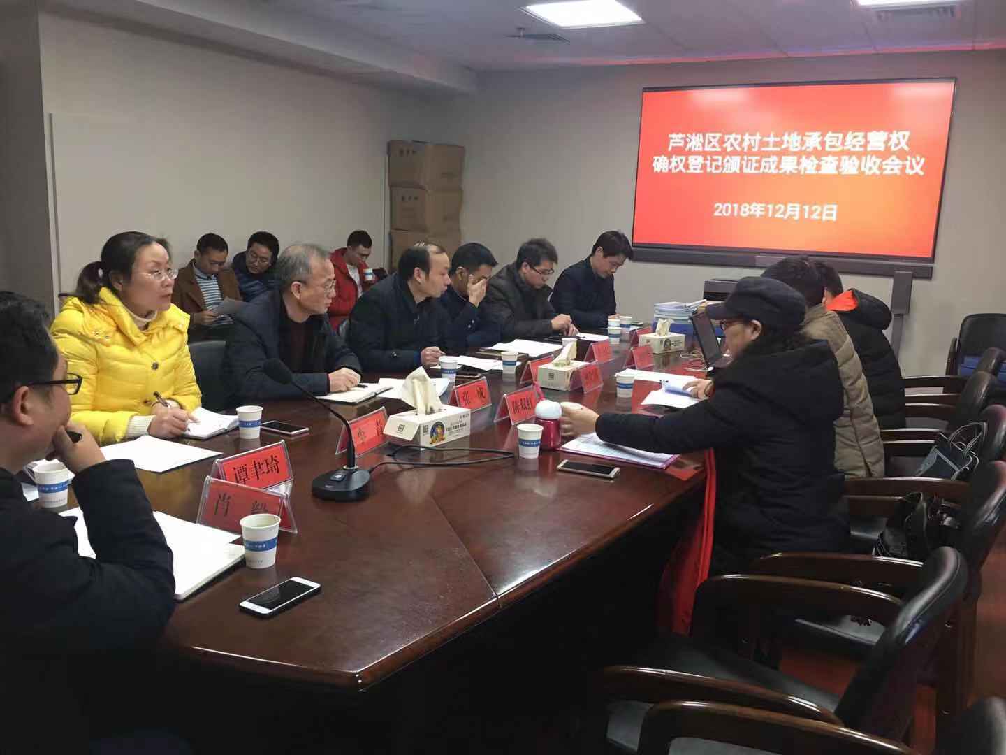 12月12日,我区召开了农村土地承包经营权确权登记颁证成果验收会议,区农村工作局、财政局、档案局、国土芦淞分局等单位相关责任人参会。会上,区农村工作局局长邓礼辉向市确权办验收组汇报了我区工作开展情况。听取汇报后,验收组查阅了相关档案资料,在区政务中心实地查看了信息应用平台建设情况。