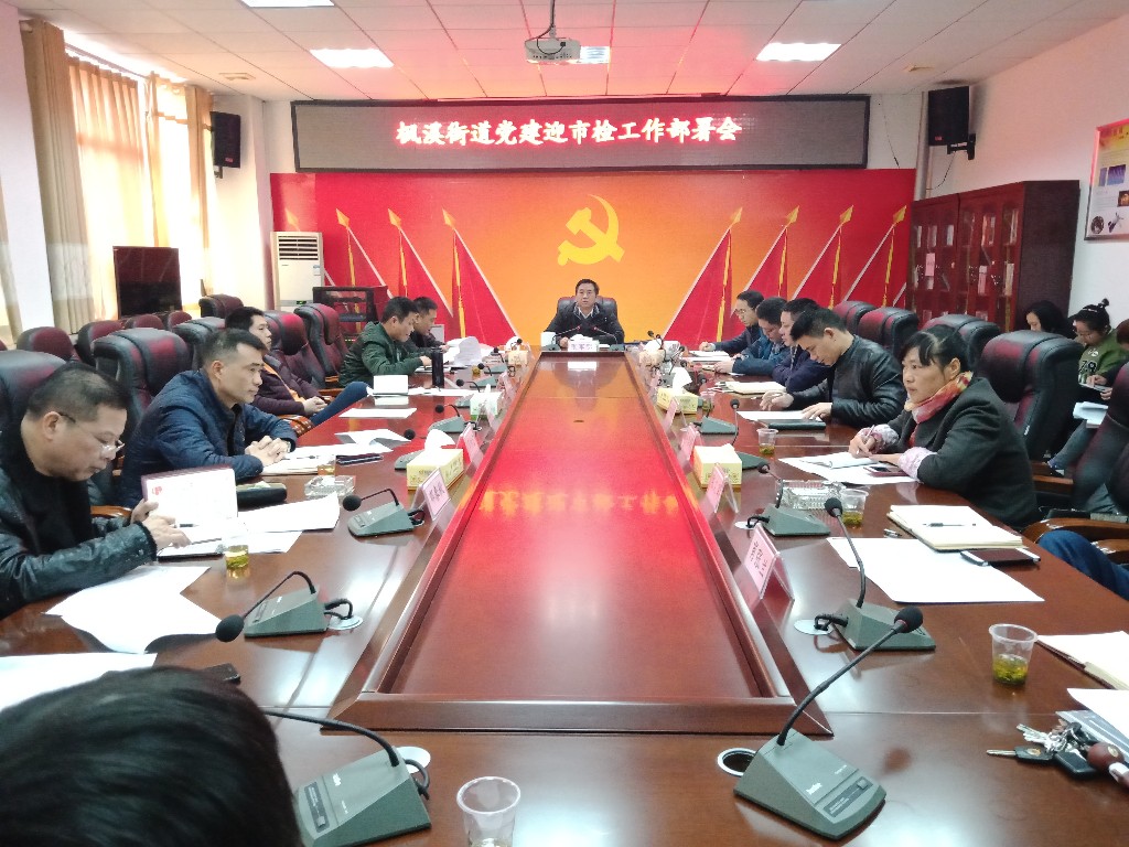 2018年12月14日,枫溪街道召开党建迎市检工作部署会,枫溪街道党工委书记张军明主持会议,枫溪街道全体班子成员、村社区党组织书记、党建专干参会。 会上,枫溪街道组织委员王婵娟详细部署了此次迎党建检查的重点任务,要求大家切实担起责任,严格按要求落实到位,要注重细节,认真细致,枫溪街道将组织专人进行指导督查。