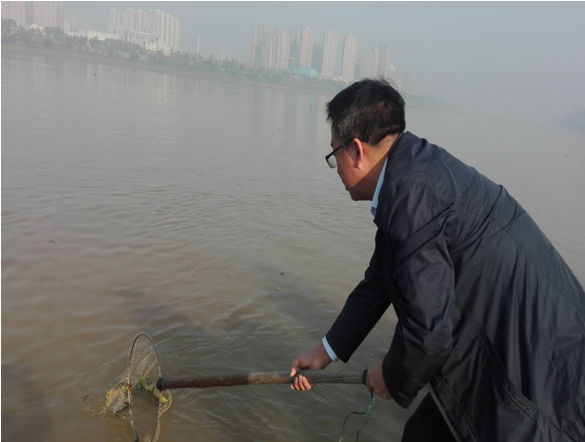 11月28日上午,芦淞区枫溪街道党工委书记张军明带头履职尽责,带领相关部门乘船打捞水葫芦,切实发挥表率作用。