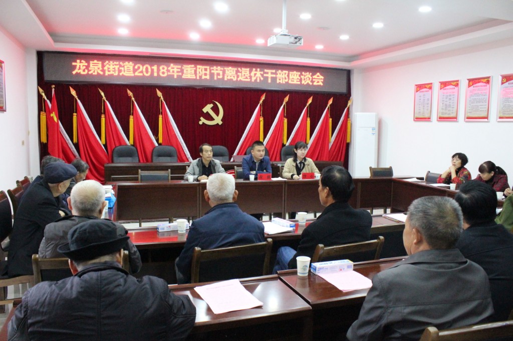 10月17日上午,龙泉街道在办事处四楼会议室召开了九九重阳节离退休干部座谈会。会议由龙泉街道党工委委员、办事处副主任谢咏煌主持,龙泉街道党工委副书记,办事处主任黄强、党工委副书记曾心及街道全体离退休干部参加会议。