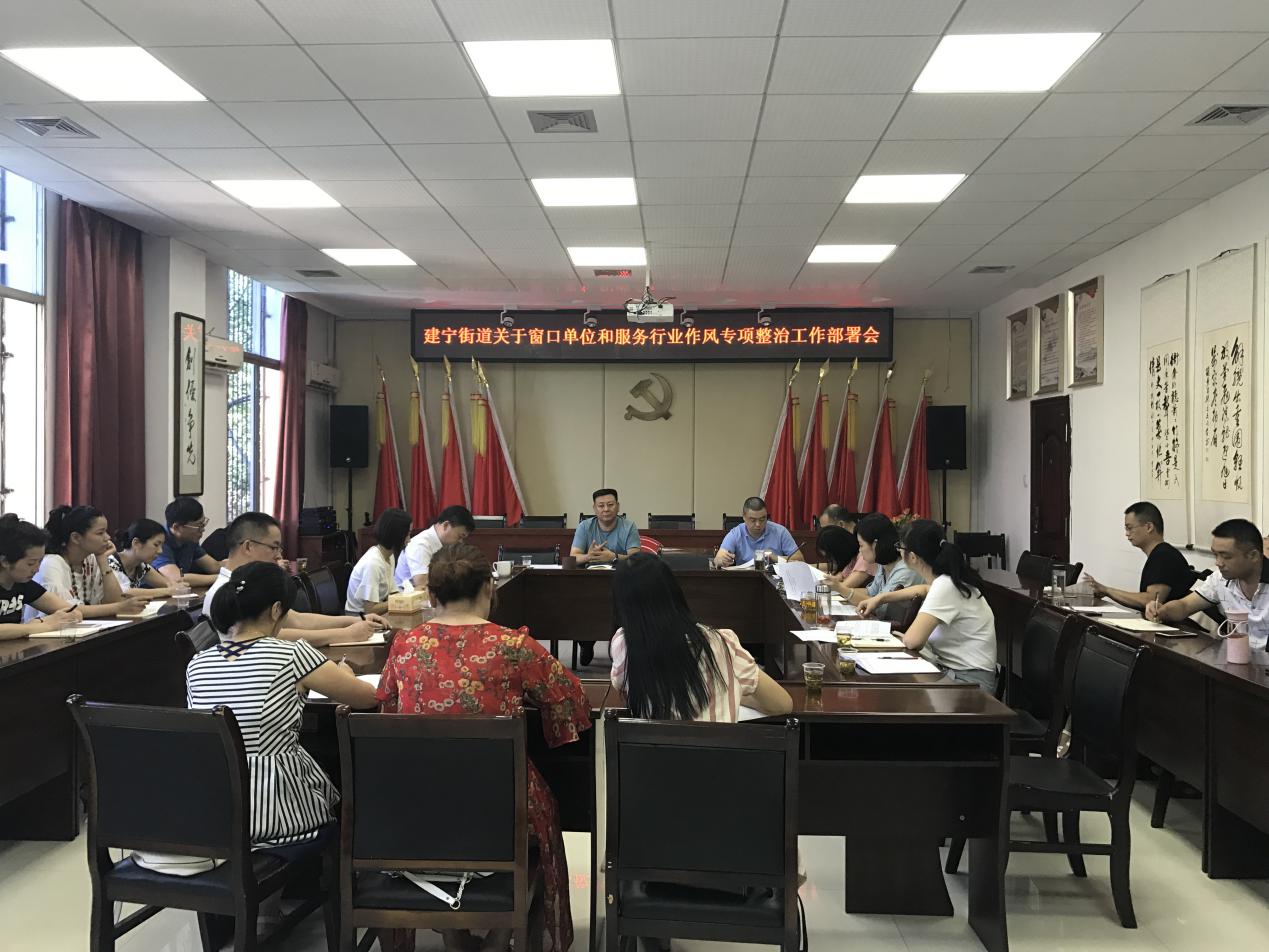 9月3日,建宁街道召开窗口单位和服务行业作风专项整治工作部署会,对辖区窗口单位和服务行业改进作风专项行动进行动员部署。街道全体工作人员和社区书记、主任参加了会议。 会上,街道党工委委员、纪工委书记易红军就专项整治工作方案进行了详细的部署,并要求,各窗口单位、服务行业要把专项行动作为当前的一项重要任务,抓好内部的监督检查,及时发现和纠正存在的问题,对工作人员违反各项纪律规定,危害服务对象利益的行为,坚决予以严肃处理,确保整治工作取得实效。
