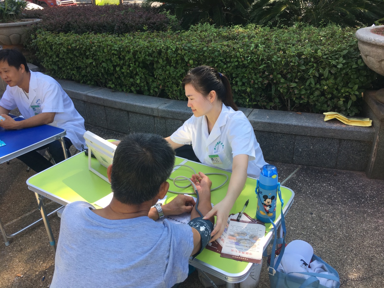 医务人员为群众测量血压
