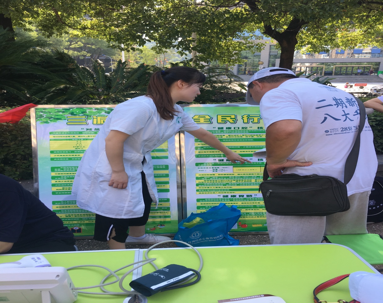 2018年9月1日是全国第12个"全民健康生活方式日", 为了提高全民健康意识,普及健康生活方式技能,深入推进全民健康生活方式行动。9月3日,芦淞区建宁街道社区卫生服务中心在董家塅人文广场积极开展以 "三减三健 全民行动"为主题的健康宣传活动。
