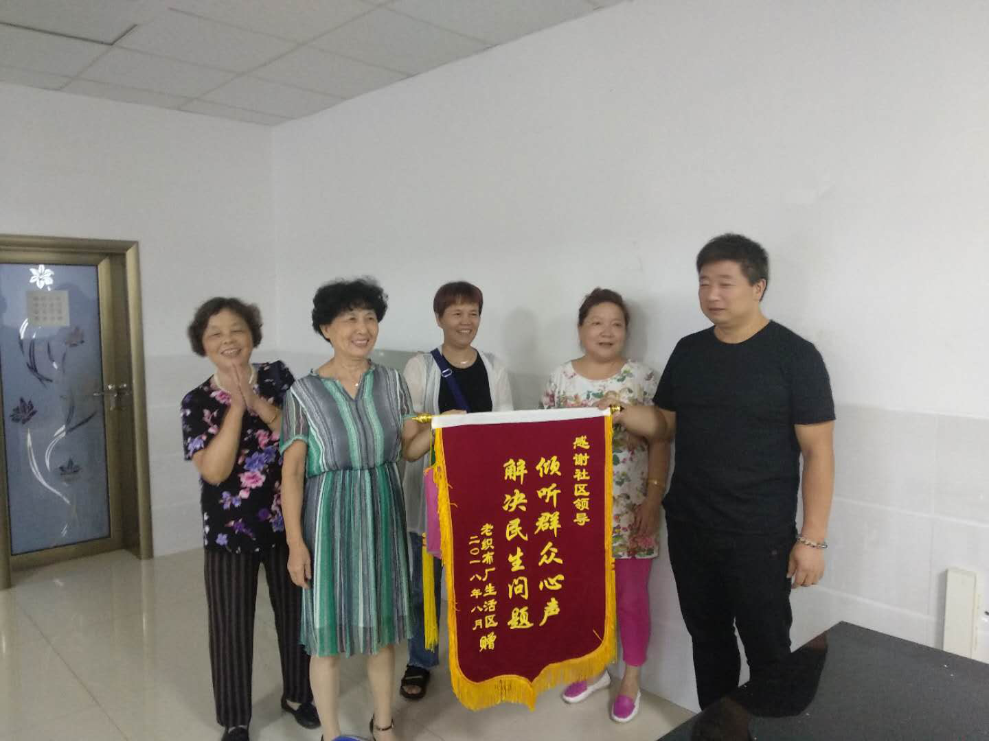 8月27日上午,尽管天气闷热,家住庆云山三村的居民热情洋溢的将一面写着“倾听群众心声,解决民生问题”的锦旗送到了庆云山社区办公室,对社区长期为小区居民办实事、惠民生表示衷心感谢。