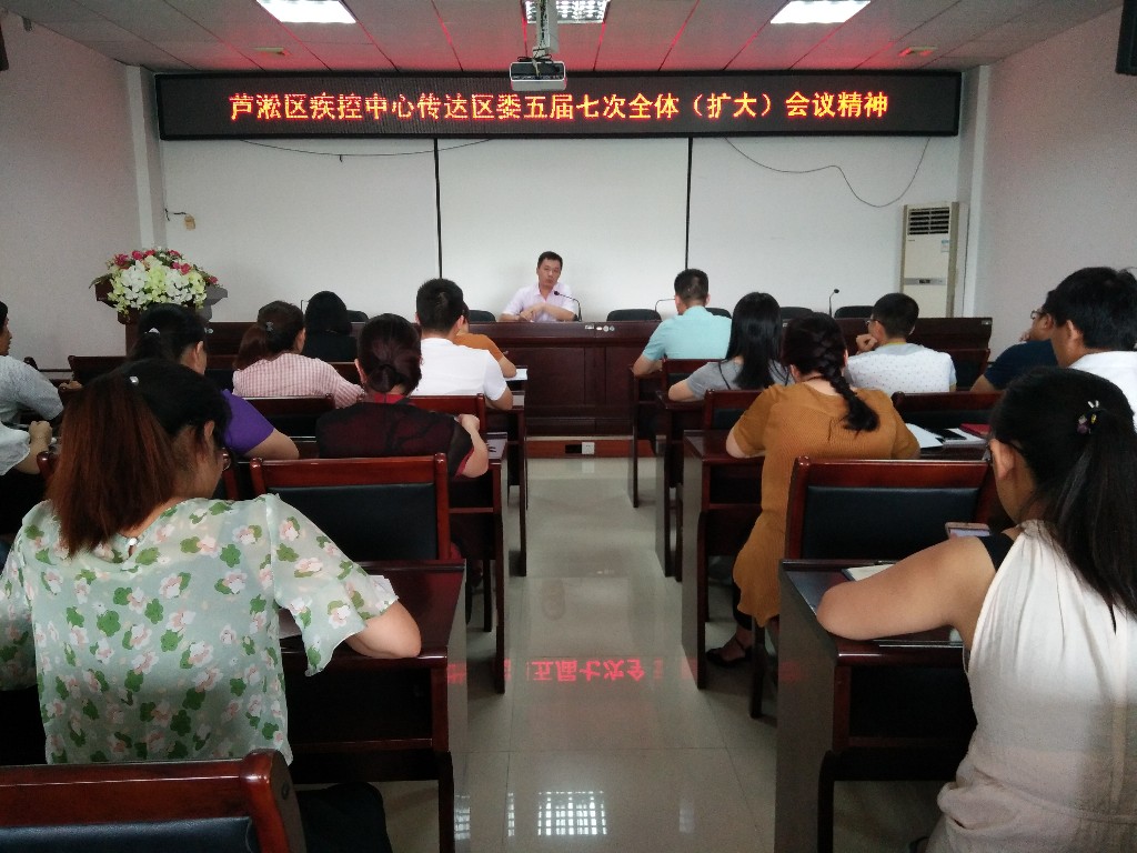 2018年8月3日15:00,在区疾控中心五楼会议室,何礼主任传达区委五届七次全体会议精神,同时结合中心实际,部署深入学习、贯彻落实工作。 会议强调,要认真学习领会,提高认识,提升党建工作与业务工作能力水平,提升疾病防控能力,着力改善民生,为芦淞区人民生命健康、生活质量保驾护航。