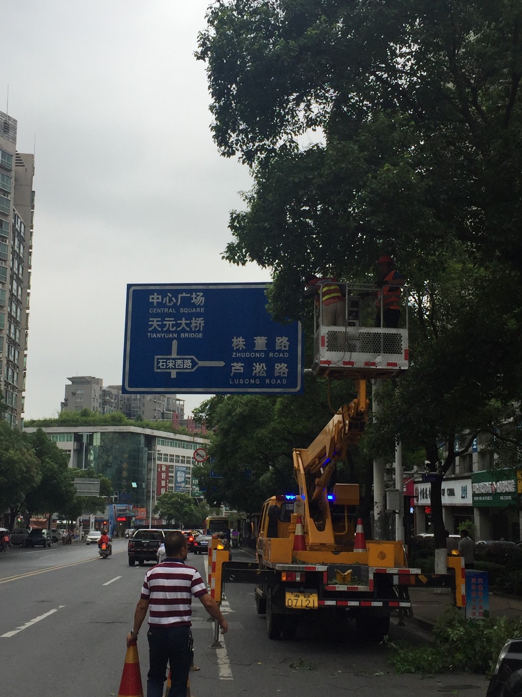 为尽快消除隐患,6月至7月,芦淞区绿化处联合市灯饰管理处、交警大队、电业局,组织30余人调用2台高空作业车,分成两组专业修剪队伍,重点对区主次干道行道树枯枝、病虫枝、下垂枝及影响通行、遮挡交通标识、信号灯,有碍路灯采光、电缆等问题进行排查并合理修剪。