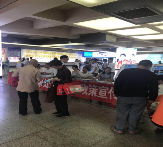 6月11日下午,建设街道劳动保障站全体工作人员和社区劳动保障专干在中心广场地下通道、王府井、大汉希尔顿设点开展劳动保障政策宣传活动。