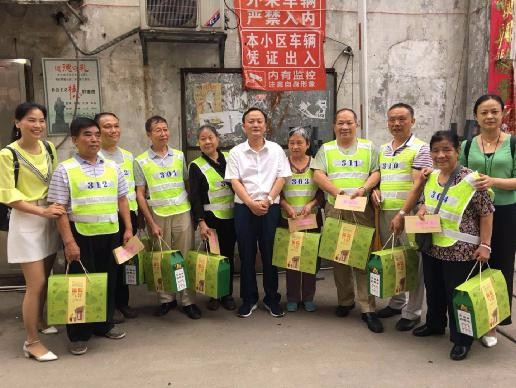 夏志毅首先走进社区困难居民自发组织的平安创建队伍中,向一线巡防队员们送去节日慰问金和端午平安粽,感谢他们始终保持积极乐观的心态,自觉投身平安创建工作,为社区平安和谐稳定所付出的辛劳和汗水。