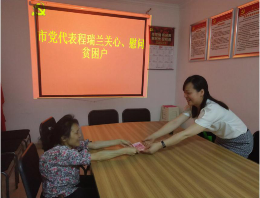 5月16日下午,市党代表、湖南省新华书店有限公司株洲市分公司副总经理程瑞兰走进何家坳社区,关心慰问社区困难户许利煌。