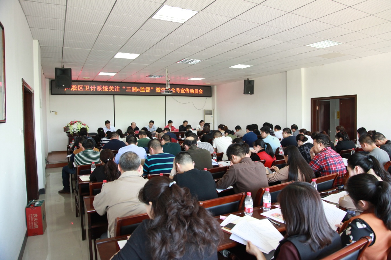 二是召开动员会议,层层宣传发动。4月18日,组织召开了"芦淞区卫计系统关注"三湘e监督"微信公众号宣传动员会",局属各支部书记、支部委员,局属医疗机构院长(主任)共计70余人参加了该会议。会上,区纪委驻卫计局纪检组组长黄灿同志对"互联网+监督"平台宣传工作进行了全面部署。随后,局属二级机构、各社区卫生服务中心、乡镇卫生院也纷纷召开了动员会。