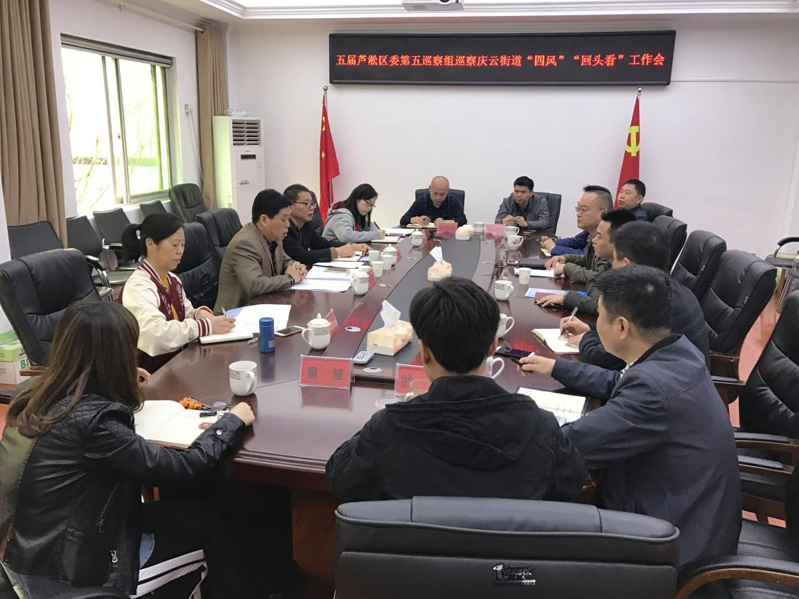 2018年3月29日上午,庆云街道召开五届芦淞区委第五巡察组巡察庆云街道"四风""回头看"工作会议,区委第五巡查组成员,庆云街道党政班子成员参会。第五巡察组组长殷凯旋主持会议。