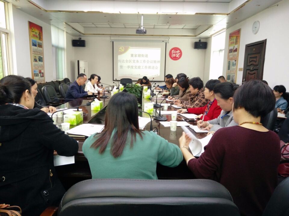 3月23日下午,董家塅街道召开传达全区党务工作会议精神暨一季度党建工作推进会,街道党工委书记杨锡钢、街道党工委委员、组织委员邱红霞、特色党建工作领导罗俊莲以及各村、社区书记和党建专干参加会议。会议由街道党工委委员、组织委员邱红霞主持。