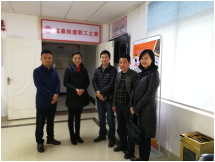 2018年3月19日上午,市总工会经审委主任刘金伟、基层工作部部长黄晓燕一行在区总工会主席肖小莉、街道办事处主任黄强的陪同下对龙泉街道职工之家进行了考核验收。