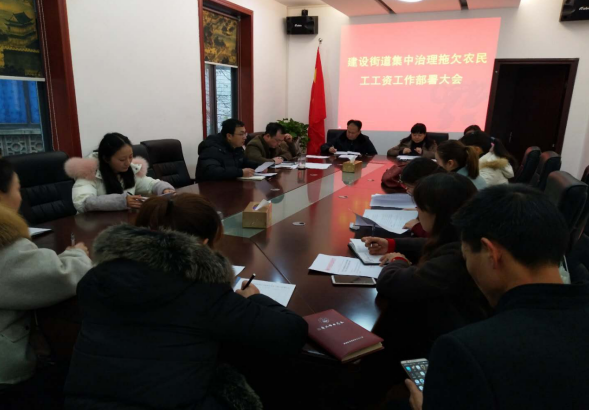 1月19日上午,建设街道在三楼会议室召开集中治理拖欠农民工工资工作部署大会。办事处主任李强、副主任杜庆云、副主任邹璇、街道各部门负责人、各社区书记参会。