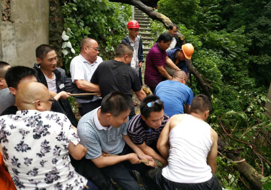 街道党政领导带头清理垮塌护坡下的树木
