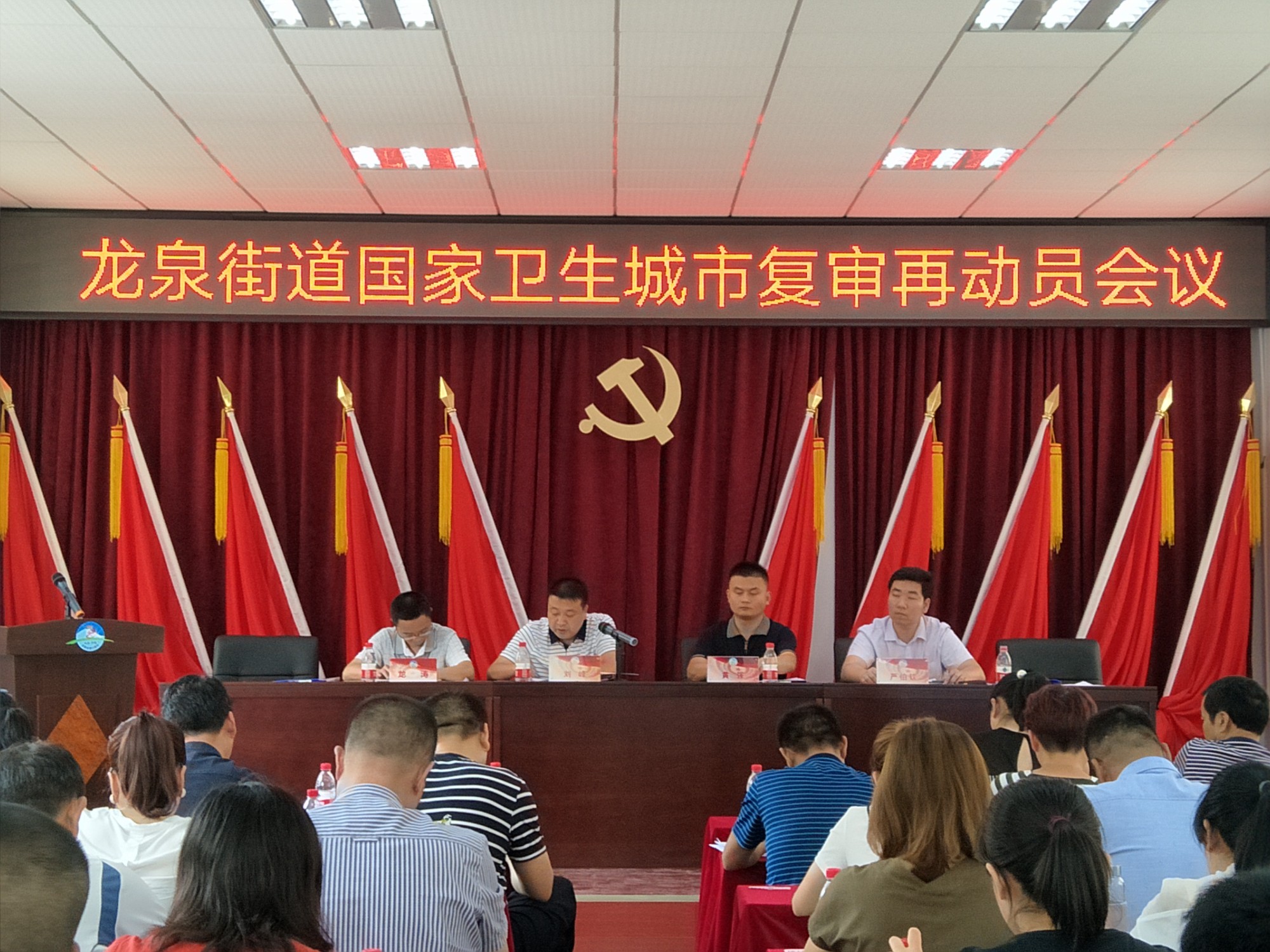 为做好迎接国家卫生城市复审工作,进一步加强城市环境卫生综合整治,营造干净整洁人居环境,确保顺利通过国家爱卫办的复审。6月22日,龙泉街道召开国家卫生城市复审再动员会议,街道办事处全体党政班子成员、各股室负责人、各社区(村)书记、主任、专干、保洁公司共50多人参加了会议,党工委书记刘峰同志出席并就国卫复审工作作了重要讲话,办事处主任黄强主持会议。