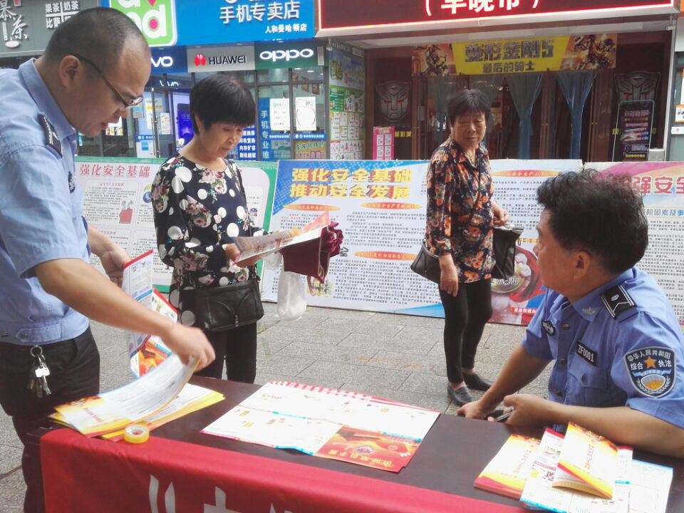 为贯彻《芦淞区安全生产委员会关于开展2017年“安全生产月”活动的通知》(芦安发[2017]7号)要求,进一步加大安全生产宣传力度,推动落实企业安全生产主体责任,普及安全知识,营造安全发展的舆论氛围。6月15日上午,龙泉街道在辖区曼哈顿广场积极开展安全宣传活动。