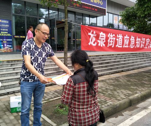 今天是芦淞区5·12应急日,龙泉街道办事处在辖区曼哈顿广场开展综合知识宣传活动。一大早,街道工作人员就在活动现场悬挂起了横幅、摆起了展板、摆上座椅,置放好宣传单页和资料。