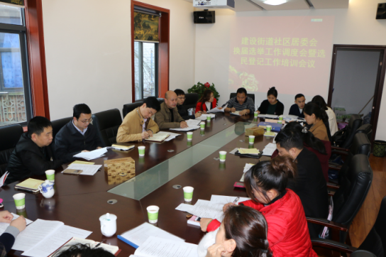 4月1日下午,建设街道召开社区居委会换届选举工作调度会暨选民登记工作培训会议,会议由街道党工委副书记袁平主持,街道全体班子成员,各社区书记、主任参会。