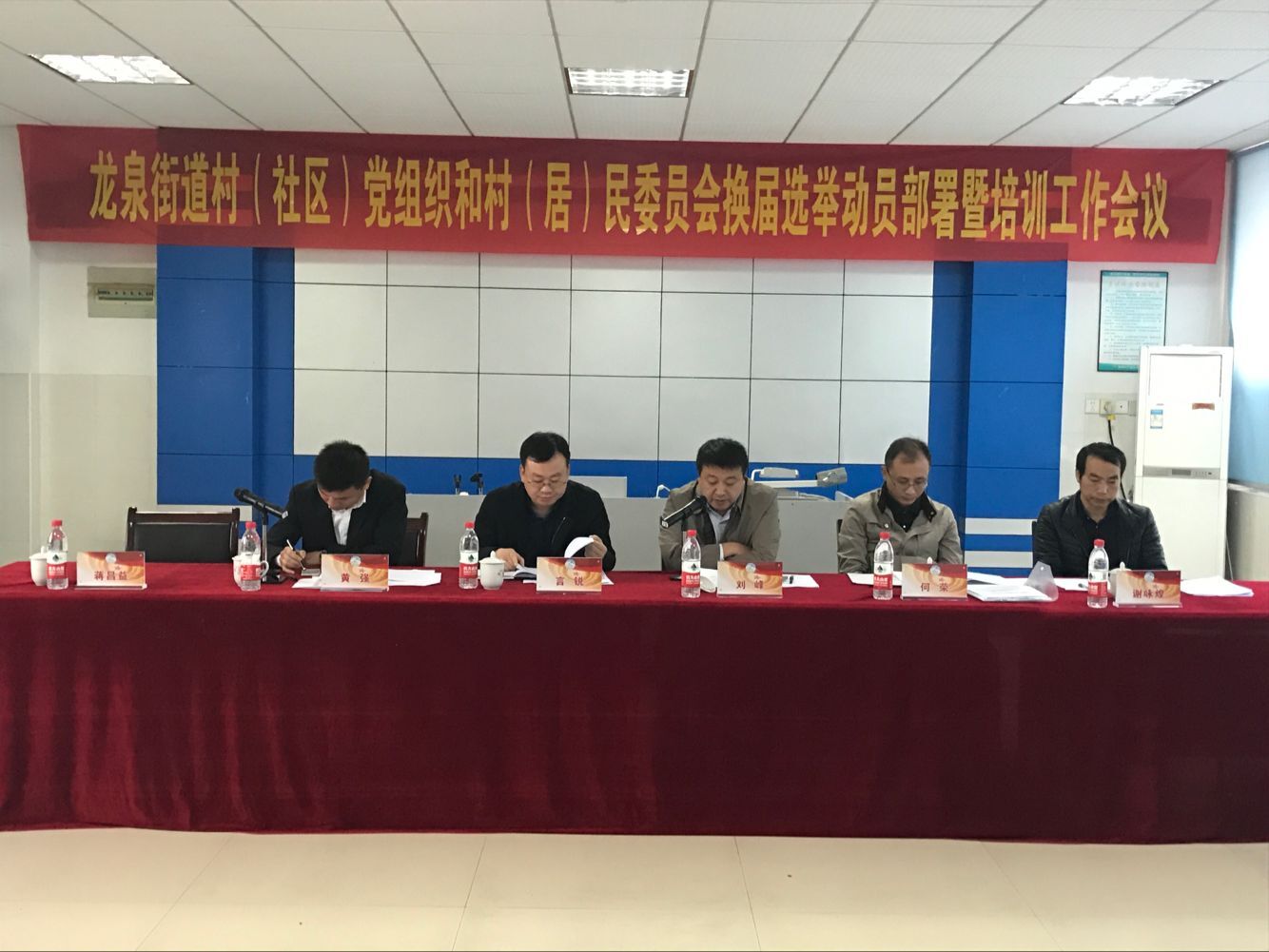 3月10日上午9点30,龙泉街道在高家坳小学六楼多媒体室召开村(社区)党组织和村(居)民委员会换届选举动员部署暨培训工作会议,会议由龙泉街道党工委副书记、办事处主任黄强主持,董家塅高科园副书记、管委会主任言锐,龙泉街道工委书记刘峰及街道其他班子成员,区委督导组一行,全体机关干部、社区(村)两委全体成员共计100余人参加。