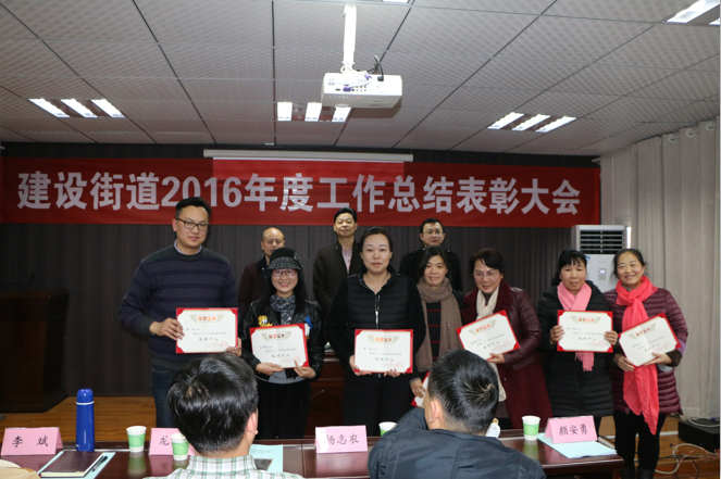 紧接着,召开了建设街道2016年度工作总结表彰大会,党工委副书记袁平宣读表彰决定,受表彰的先进部门、先进个人、项目建设先进个人等部门负责人、个人依次上台领奖。林子其从征地拆迁、信访维稳、党组织建设、劳动保障、民政、卫计、城市管理、社区建设工作等方面对办事处2016年行政工作作出全面总结,并针对本街道2017年工作提出了六点要求:一要日常工作创特色,二要重点工作求突破,三要服务工作争上游,四要素质提升上台阶,五要作风建设出实效,六要宣传推介上水平。最后,林子其建议建设街道全体工作人员在2017年的工作中要戒骄戒躁,继续发扬好的作风,为建设更好的明天共同奋斗。