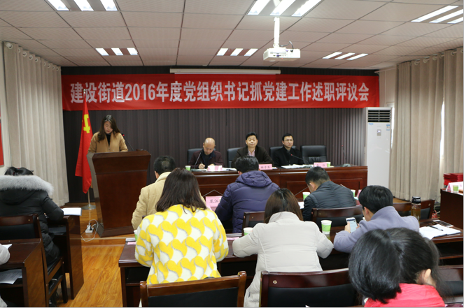 1月24日下午,建设街道召开2016年度党组织书记抓党建工作述职评议大会和2016年度工作总结表彰大会,会议由街道办事处主任李强主持,街道机关和社区全体工作人员、两代表一委员、居民党员代表、退休党员代表等78人参加会议。