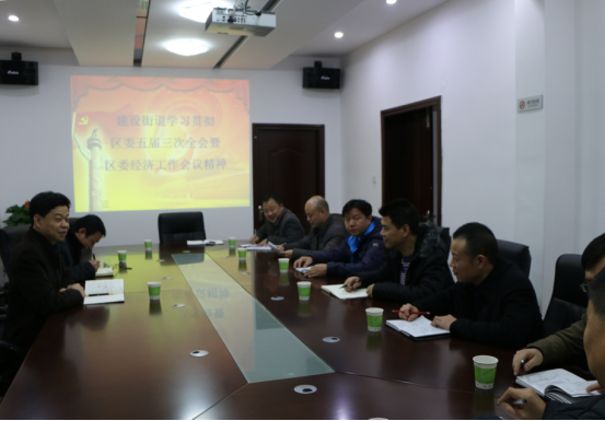 1月22日下午,建设街道召开党政班子联席会, 迅速传达贯彻区委五届三次全会和区委经济工作会议精神,会议由党工委书记林子其主持。