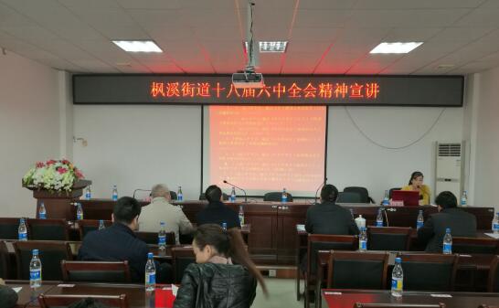 近日,芦淞区委“十八届六中全会宣讲团”成员、区文联主席刘亚平来到枫溪街道办事处宣讲十八届六中全会精神,枫溪街道党工委书记张军明主持宣讲会,枫溪街道全体机关干部及村、社区书记、主任参会。