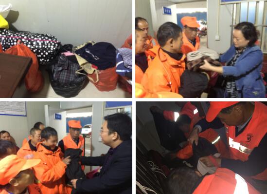 也许你正在为如何处理不穿的旧衣服而烦恼。也许你并不知道,环卫工人好几年都不舍得买一件新衣服。从9月开始,芦淞区环境卫生管理处在机关内发起“捐出旧衣物 温暖环卫工”活动,让您的旧衣服给环卫工人送去一份实实在在的温暖和关怀。 芦淞区环卫处机关人员积极响应此次活动,经过1个月的整理,共整理出300余件衣物,于2016年11月26日在钱玉萍主任的带领下向我区环卫工人进行捐赠。