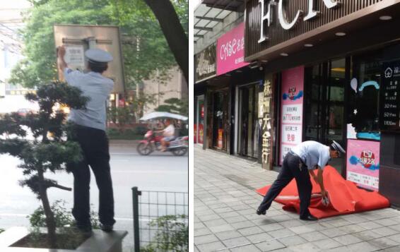 芦淞城管大队针对部分经营业户不顾及城市形象,随意张贴、摆放户外广告,随意散发传单的现象,对城区各主次干道乱贴乱画现象进行了集中清理整治。