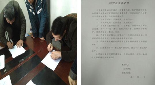 辖区中队对水果店主提出“共同支持、共同理解、共同配合”的希望,水果店主听后均表示感谢城市管理工作者所做的服务工作,自己一定会按照城市管理要求规范经营,并在现场签订了《经营业主承诺书》,按照管理标准将出店的水果食品规范摆放,此举成功完成了贺嘉路水果店出店经营现象由突击治理向长效管理转化的关键一步。